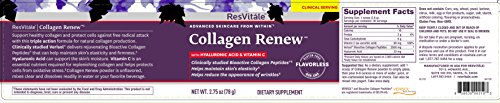 -. Binding : Health and Beauty -. Brand : ResVitale -. Department : GNC|ALL|ALL|Vitamin Category -. EAN : 0885370079593 -. Feature : Clinically studied Bioactive Collagen Peptides® / Helps maintain skin's elasticity / Helps Reduce The Appearance Of Wrinkles / Resvitale Collagen Renew / Support Healthy Collagen And Protect Cells Against Free Radical Attack With This Triple Action Formula For Natural Collagen Production. Clinically Studied Verisol Delivers Rejuvenating Bioactive Collagen Peptides That Can Help Maintain Skin&Rsquo;S Elasticity And Firmness. Hyaluronic Acid Can Support The Skin's Moisture. Vitamin C Is An Essential Nutrient Required For Replenishing Collagen And Helps Protects Cells From Oxidative Stress. Collagen Renew Powder Is Unflavored, Mixes Clear And Dissol -. IsAdultProduct : 0 -. Label : RESVITALE -. LegalDisclaimer : WARNING: KEEP TIGHTLY CLOSED AND OUT OF REACH OF CHILDREN AND PETS. DO NOT USE IF SEAL IS BROKEN. Do not take if you are pregnant, nursing, on medication or under a doctor's care. -. Manufacturer : RESVITALE -. MPN : No Part Number -. PackageQuantity : 1 -. PartNumber : No Part Number -. ProductGroup : Health and Beauty -. ProductTypeName : HEALTH_PERSONAL_CARE -. Publisher : RESVITALE -. Size : 78 GM -. Studio : RESVITALE -. Title : ResVitle Collagen Renew 78 g -. UPC : 858830002103