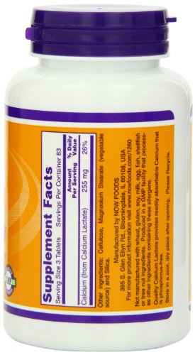 -. Binding : Health and Beauty -. Brand : NOW -. Label : NOW -. Manufacturer : NOW -. PackageQuantity : 1 -. ProductGroup : Health and Beauty -. ProductTypeName : HEALTH_PERSONAL_CARE -. Publisher : NOW -. Studio : NOW -. Title : Calcium Lactate (255mg)