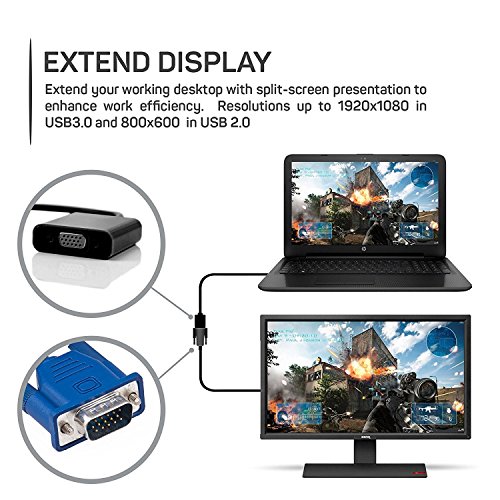 EXTERNAL VIDEO GRAPHICS CARD: Functions like an external graphics card offering flawless high definition video transmission to your monitor or projector. Supports up to 1920 x 1080 for compatibility with most displays, monitors and projectors with VGA.