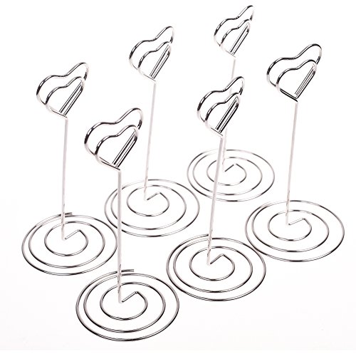 BCP 6pcs Silver Color 5 inches Heart-shaped Wire Memo Number Photo Clips Holder Stands for Office, Home, Weddings Party Gathering