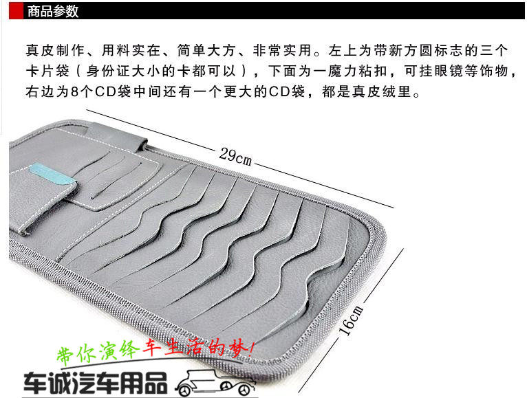 2. Leather CD sunshade bag, durable, very convenient set in the car sun visor, easy to disassemble.