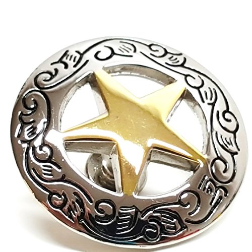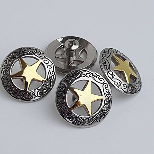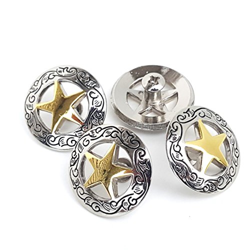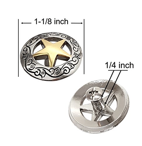 Set of 4 1-1/8" Silver Engraved Gold Star Concho W/ 1/4" Screw Back