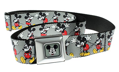 | (Buckle Down)/Accessories/Belts Buckles/DIRECT FROM USA/Mickey Standing Pose Film Strip White/black Seatbelt Belt |