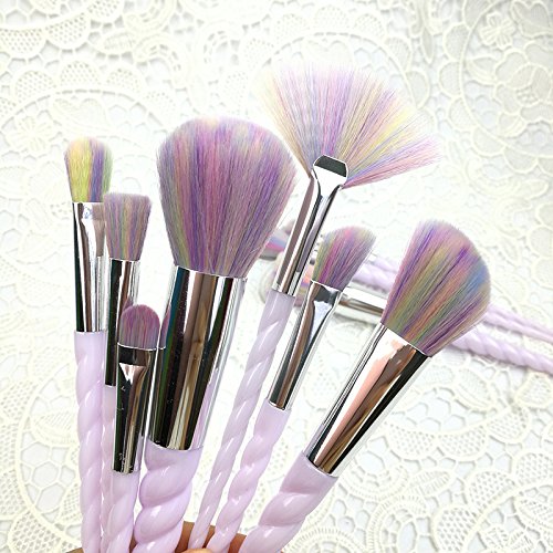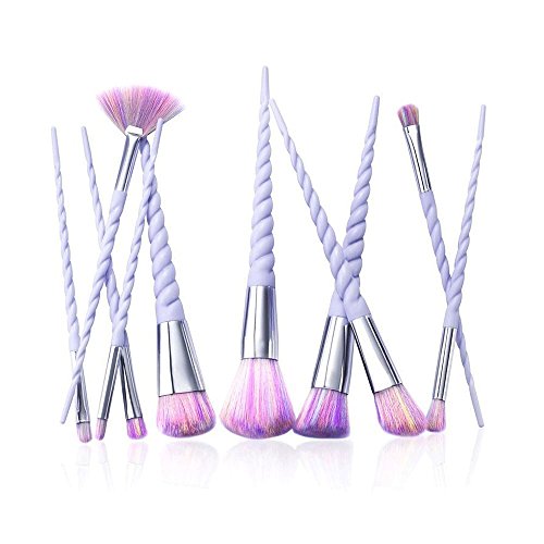 - ✔Easy to Use and Portable: The handles of the brushes are twisted like a Unicorn Horn in a very pale pearly lilac shade, unique design brush pole shape , to ensure comfortable feel and easy to use and holds everything nicely for when you travel.