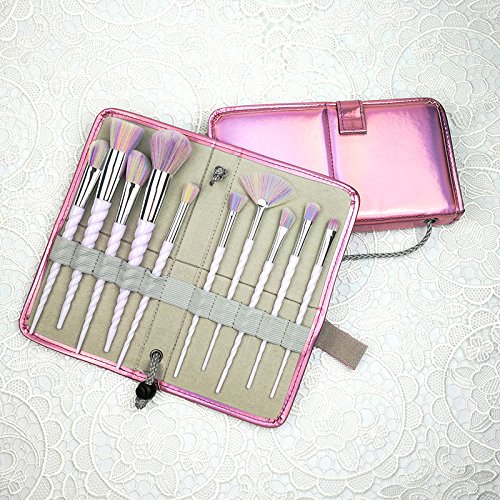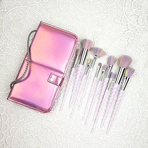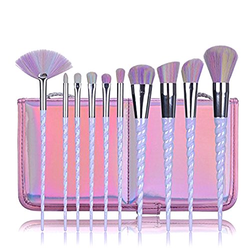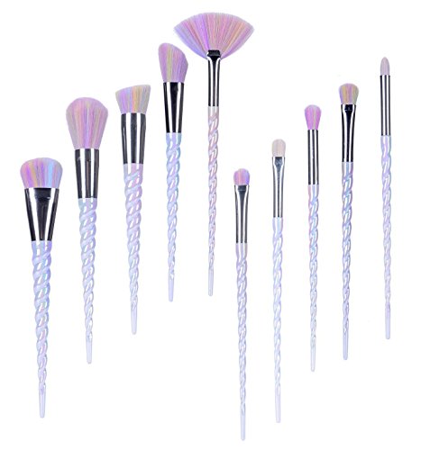 fiveaccy Unicorn Makeup Brushes , Makeup Brushes Set Rainbow Professional Powder Cream Blush Brush Kits with Bag (10Pcs) (Unicorn brushes)