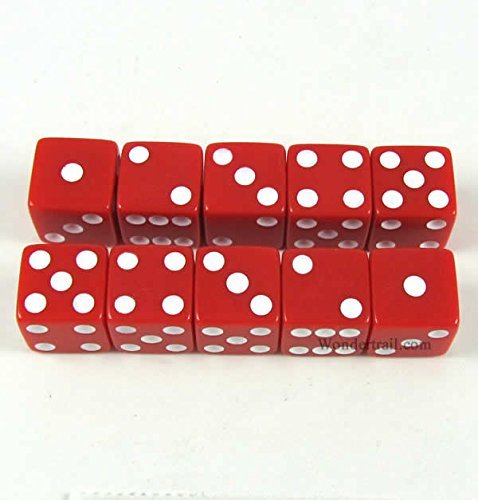 (Koplow Games)/Games/Dice Gaming Dice/DIRECT FROM USA/Red with White pips 16mm (5/8in) D6 Dice (10) Koplow Games