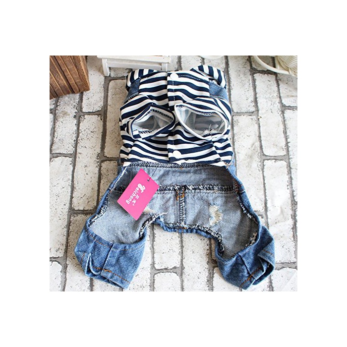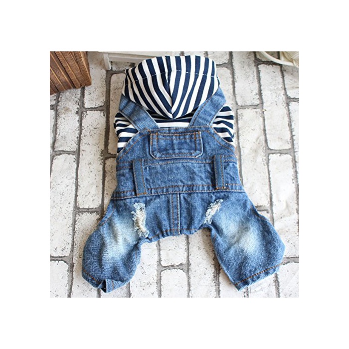 Mews House(뮤즈 하우스)애완동물복 연결 뽀빠이 바지 진즈 데님 춘하복 개와 고양이 후드 부착