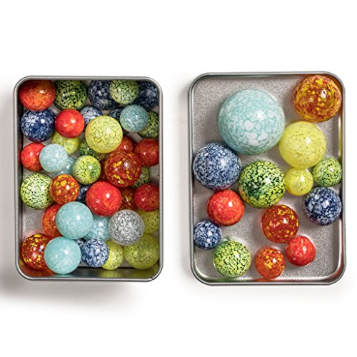 - Tin Box Included: A silver colored, tin box is included for the convenient storage and transport of the complete marbles set.