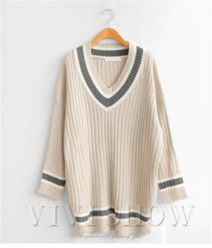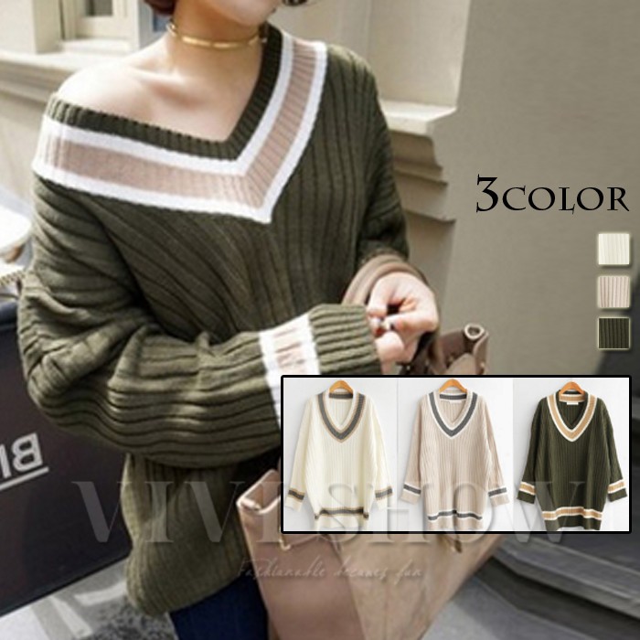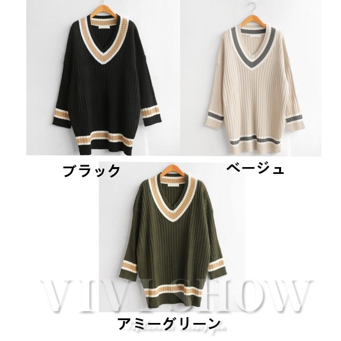ニットトップス レディース 深Vネック ニットソーワンピース 長袖セーター ボーダー ニットトップス 韓国風 ゆったり 着痩せ カジュアル オシャレ 3色■素材:綿/ポリエステル■カラー:ブラック べージュ アミーグリーン■サイズ:フリーサイズ 着丈:75 バスト:120■原産地:中国商品は取り寄せのため、納期は約7-10日前後、お急ぎの方はご了承ください。※交通状況により上記予定日より到着が遅れる場合があります。