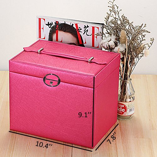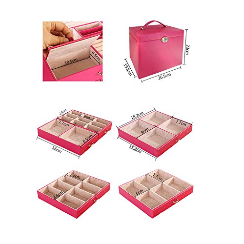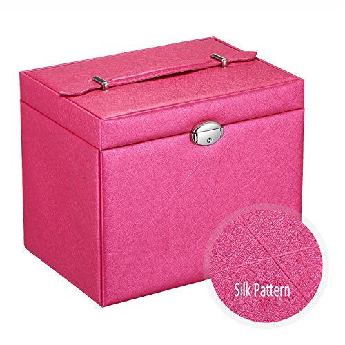 - [SUPERIOR QUALITY] --- Made of black faux leather and soft velvet, protect jewelry from scratching and damaging, handle and mirror provided, new snap closure with keys to make sure safety. (Notice: The Key is in the jewelry box, you need open the circle ring around the lock and will find the Key.)