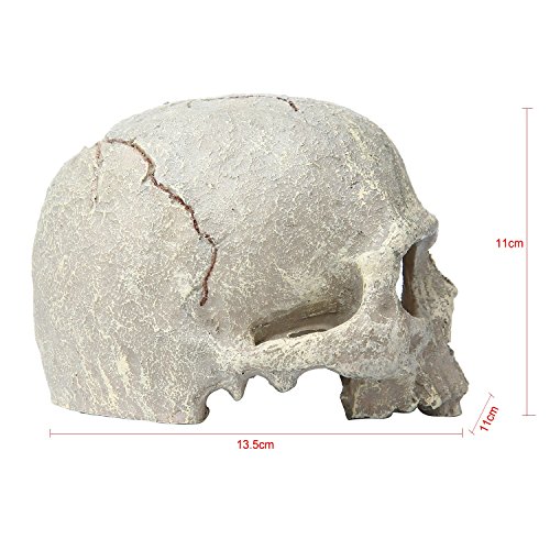 -. Feature : Material: Resin. Size: 4.3-in L X 5.3-in W X 4.3-in H / Awesome skull aquarium decoration to your tank. Great place for fish to swim through, hide and reduce stress / This hyper-detailed aquarium decoration is safe for use in all salt and freshwater fish tanks, and terrariums and reptile enclosures too! / Durable, no obvious color leaking or fading, no-toxic and easy for daily washing / There is no maintenance required, just place in the right spot and watch your inhabitants enjoy their new decor.
