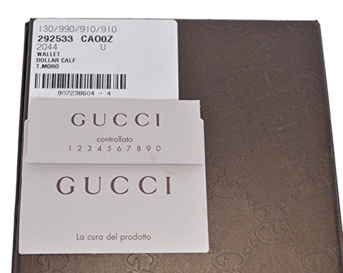 Binding : Apparel Product Description New in Gucci Box Style: 292533 Textured Brown Leather Embossed "Gucci" Logo on Front Leather Interior 6 Credit Card Slots 1 Long Bill Slots 4 Slip Pockets "Gucci" Embossed on Interior Leather Interior Gucci Serial Number Measures 3 7/8" x 4 3/4" Gucci Box Made in Italy Condition: New with Tags on Box What is Included: Wallet, Box, Tags and Controllato Card Color: Brown 0