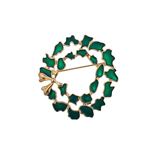 Lux Accessories Holiday Christmas Xmas Green Goldtone Wreath Brooch Pin