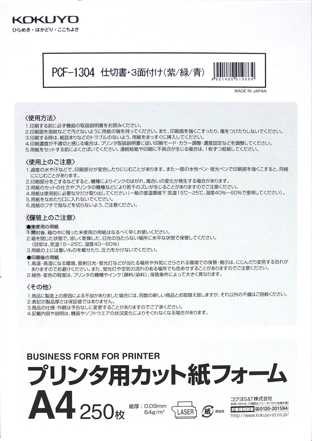 Kokuyo printer for cut sheet form three sides with A4 PCF-1304 (japan import)