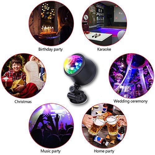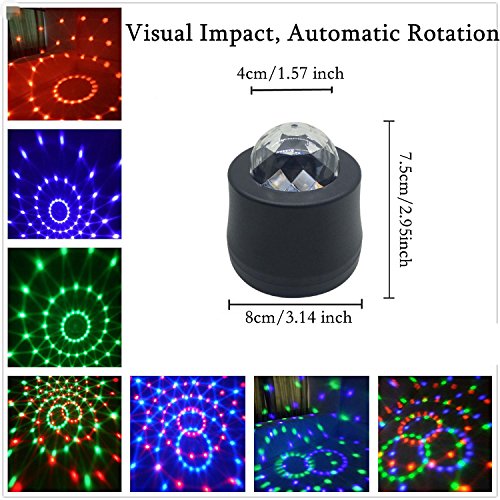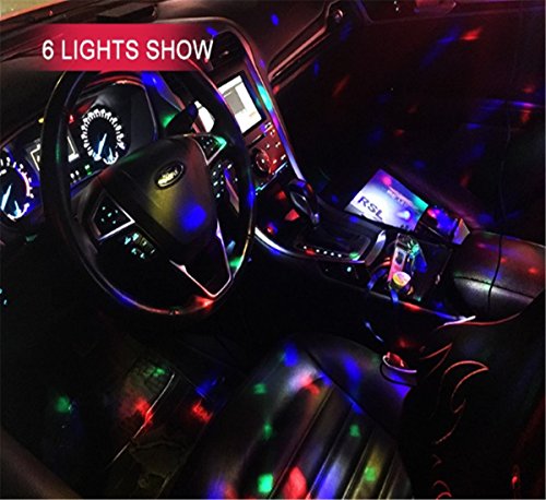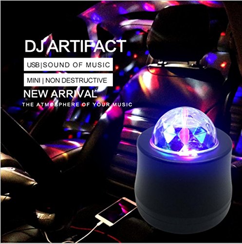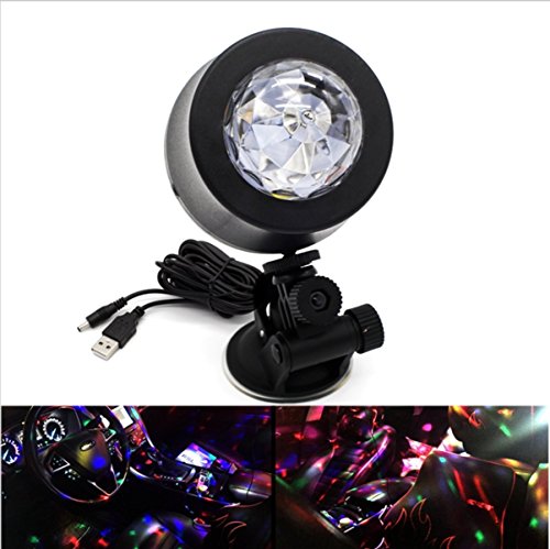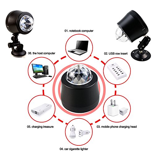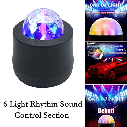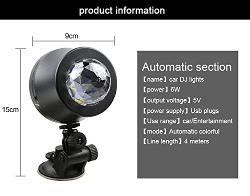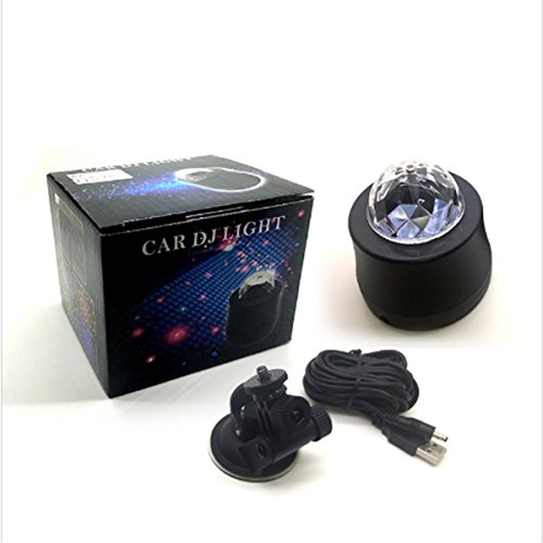 Studio : EJ's SUPER CAR Publisher : EJ's SUPER CAR Product Description Description: 6 LED Lights Material: High quality plastic Light Source: 6*1W LED Color: Black Transparent Voltage: 5V Light Color: Blue, Green, Red, Yellow, Green, Pink Wire Length: 390cm/153.5' Note: This product is just a decoration light, without music. Feature: Crystal ball, fashion and shiny look. Continuous rotating, gorgeous lighting effect. Fixed with sucker, the angle of holder can be adjusted. LED light high brightness, long service life. Easy to use, plug USB can be used. Fitment: Universal fit for most car decoration, disco, ballroom, KTV, bar, stage, club, party etc. It can fix on the car ceiling or glass as decoration light Installation: The DJ lamp with a heat vent on the flat bottom, which can be be placed flat on the ground according to your needs. 360°adjustable bracket: Screws are fixed to the side of DJ lamp, you can adjust the direction manually, then locking the screws. Hanging bracket, which can be connected to the DJ Light and adjust its irradiation range freely. The length of the data line is about 4 meters. Directly docking the jack of DJ Lamp and the distal plug. USB jack can be plugged directly into the original car cigarette lighter socket. Package include: 1 x Car decoration light 1 x Charger line 1 x Install holder