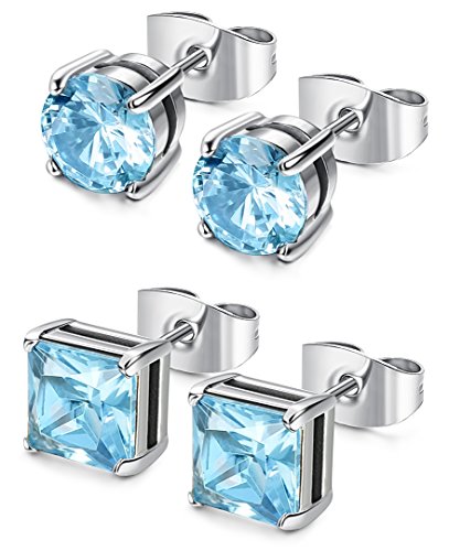 -. Title : LOYALLOOK 2 Pairs Women's Stainless Steel Cubic Zirconia Stud Earrings Birthstone Jewelry