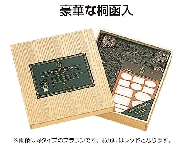 | 仕様 | ■ブック式製本 ■台紙:100年台紙(アイボリー)×25枚 ■貼付有効サイズ:タテ315×ヨコ235mm ■高級桐函入り |