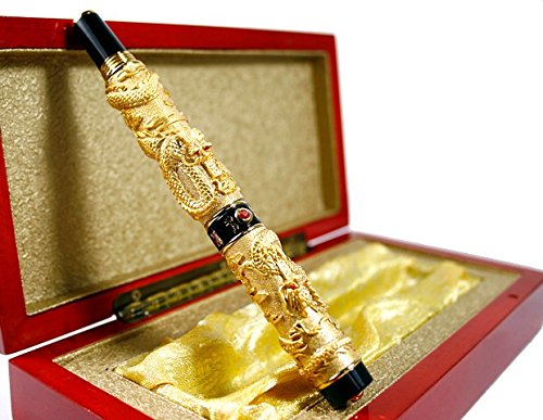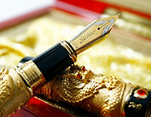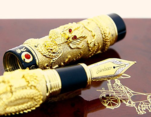 -. Title : Jinhao Luxury Golden 3D Style Classical Chinese Dragons Playing with the Pearl Carved 3D Fountain Pen Black with Push in Style Ink Converter Removable