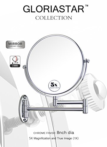 Gloriastar Wall Mount Makeup Mirror,1x/5x Magnification, 8-Inch,Chrome