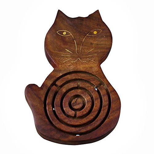 Studio : RoyaltyRoute Publisher : RoyaltyRoute Product Description This is a classic wooden cat shaped labyrinth maze game set of 2. Ball-in-a-maze puzzles are dexterity puzzles which involve manipulating either a maze (or labyrinth) or one or several balls so that the ball or balls are maneuvered towards a goal. Toys like this have been popular since Pigs in Clover was invented by Charles Martin Crandall in the 1880s. It is quite handsome and may be used as a decorative item in your living room; it can keep your guests entertained. Additionally, it would make a perfect gift for a child as well. We also offer a large selection of beautiful, high quality Wooden Puzzle Games, Brain Teaser Puzzle Games, Maze Game, Best Travel Board Games and Educational Games perfect for all ages and skill levels, all are handmade from natural wood. Great Gift Ideas for adults, kids, Children, Boy, Girls, Families, Teens, Men, Women etc. 0