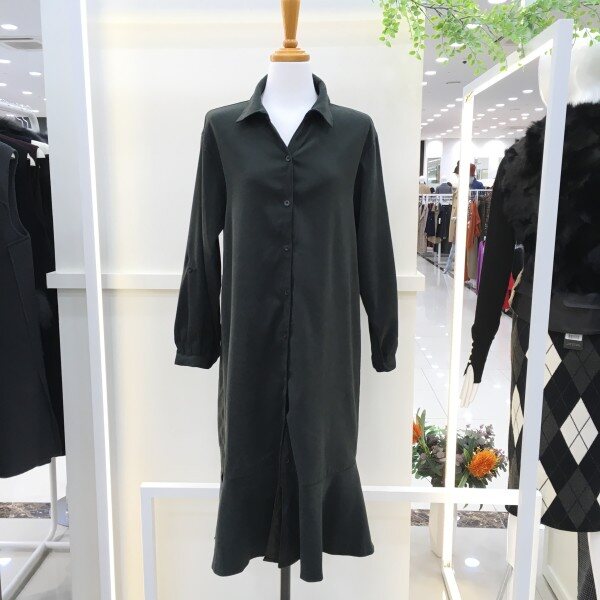 셔츠형의 롱원피스입니다:)치마밑단 프릴로 볼륨감 주었구요 팔 소매는 롤업 가능하여 원하는 스타일로 연출하실 수 있습니다. 루즈핏으로 편안하게 착용하실 수 있으며 목의 끈은 허리에도 활용하실 수 있답니다~