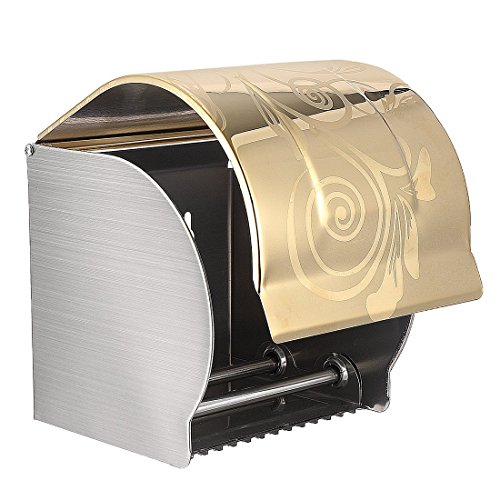 uxcell 120mmx118mmx122mm Stainless Steel Polished Finish Wall-Mounted Toilet Paper Holder w Cover