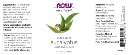 Aroma: Strong aromatic, camphoraceous.Benefits: Revitalizing, invigorating, clarifying.Mental Focus Blend: Add 3 drops of eucalyptus oil, 2 drops each of peppermint oil and tangerine oil to a diffuser and enjoy.Extraction Method: Steam Distilled from leaves and small branches Purity Tested/Quality AssuredFeature