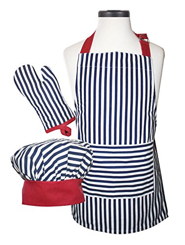 Handstand Kitchen Child's Bold Stripe Apron, Mitt and Chef's Hat Gift Set