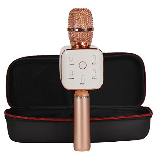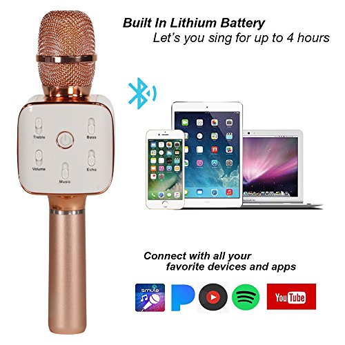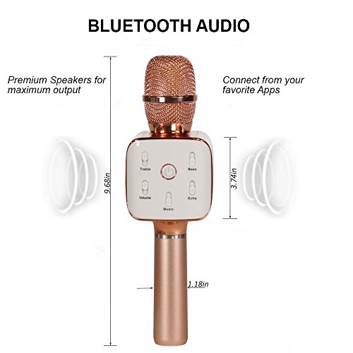 Karaoke Microphone - Portable Wireless Handheld Bluetooth with Amplifier - Broadcast, Present, Youtube Songs, for Android, Apple, and Computers - Rose Gold
