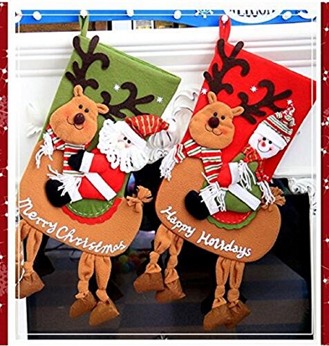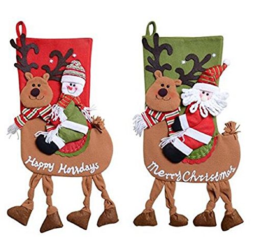 This decoration Christmas stockings set includes 2 cute styles Santa, Snowman Ride Christmas Deer