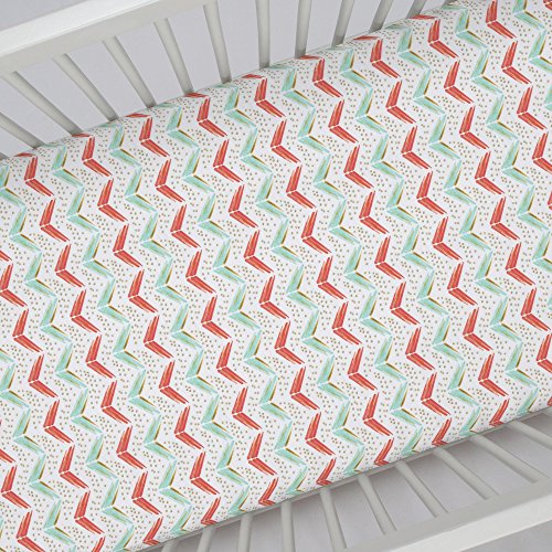 -. Binding : Baby Product -. Brand : Carousel Designs -. Color : Multicolored -. Department : baby-girls -. EAN : 0750034185845 -. Feature : ORGANIC 100% COTTON, SUPER SOFT - Carousel Designs crib sheets are made with 100% certified organic cotton fibers, which are P.R.Inted in the USA with certified organic inks. Both the cotton and the inks are third party GOTS (Global Organic Textile Standard) certified. Each crib sheet is a woven 200 thread count fabric that is perfect for your baby girl or baby boy. / MADE IN THE USA - Carousel Designs makes all of its products right here in the USA. This guarantees the products you use for your precious baby are of the highest quality and because we ship directly to you it is at a P.R.Ice that can't be beat. You will not find another crib sheet of this quality and P.R.Ice made in the USA! / FITS STANDARD CRIB MATTRESSES PERFECTLY - Every sheet is expertly sewn with deep pockets and elastic all the way around to hug your baby's mattress securely. Our fitted crib sheets are made for standard crib and toddler bed mattresses measuring 28" x 52". With thousands of customers since 1988 you can count on this being the best crib sheet you'll own! / MACHINE WASHABLE AND VERY DURABLE - We have been making crib sheets for almost 30 years and we know how many washes they go through! Our sheets are guaranteed to last through multiple washes while maintaining their luxurious feel. Make sure to wash your crib sheet before use to ensure the best fit and softness for baby. / PERFECT GIFT FOR BABY - Moms love Carousel Designs products and especially our fitted crib sheets. Whether you're giving a gift from a baby registry or looking for something to give at a baby shower, Carousel Designs makes the highest quality baby bedding and nursery decor all here in the USA. Specifically, our personalized and custom crib sheets have been known to be the hit of many baby showers. -. Label : Carousel Designs -. Manufacturer : Carousel Designs -. MPN : CTAC-C-SHT-FT -. NumberOfItems : 1 -. PackageQuantity : 1 -. PartNumber : CTAC-C-SHT-FT -. ProductGroup : Baby Product -. ProductTypeName : BABY_PRODUCT -. Publisher : Carousel Designs -. Studio : Carousel Designs -. Title : Carousel Designs Coral and Teal Chevron Crib Sheet - Organic 100% Cotton Fitted Crib Sheet - Made in the USA -. UPC : 750034185845