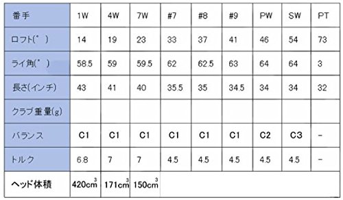 ドライバー、フェアウェイ(4W、7W)、アイアン(7I~9I、PW、SW)、パター