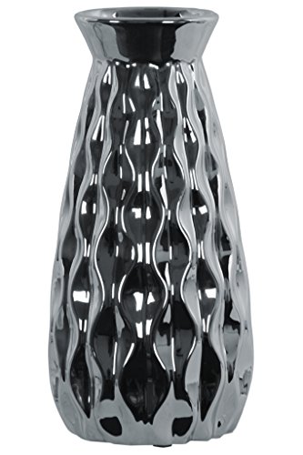 Urban Trends Ceramic Round Vase with Trumpet Mouth and Embossed Wave Design Body Polished Chrome Finish Silver