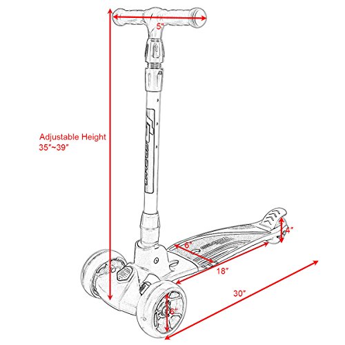 -. Feature : 【Wide and Thick Deck】The wide and thick deck of this Goplus kick scooter will make it safer, more stable and balanced. / 【4 Stable LED Wheels】This scooter includes 4 LED wheels. No batteries needed. Two big wheels are in the front while the other two are smaller at rear together. Wheels are high elasticity, wearproof, smooth, silent and will not damage the floor. / 【Foldable and Height Adjustable】Height of scooter can be adjusted from 35" to 39". It is portable and foldable which won't take up you much place but easy to take. / 【Safe Brake】It has a brake design at the end of deck, you can easily to use for quick and firm breaking fast. / 【Customer Service & Guarantee】If there is any questions pls feel free to contact us, our customer service team will response in 24 hours. If there is any part missing or damaged during shipping, please contact us first, we will offer reasonable solutions to meet your satisfaction.