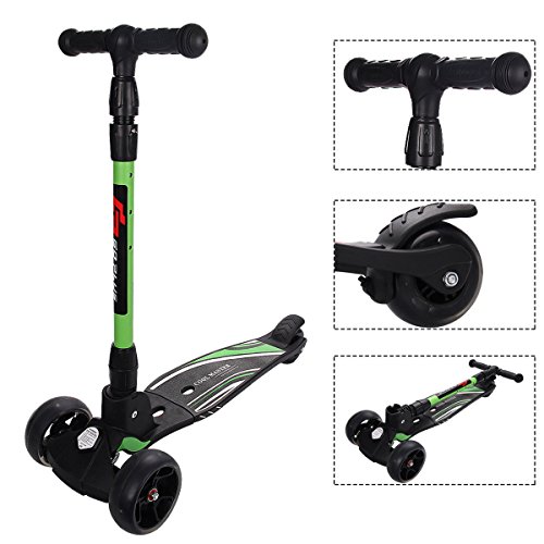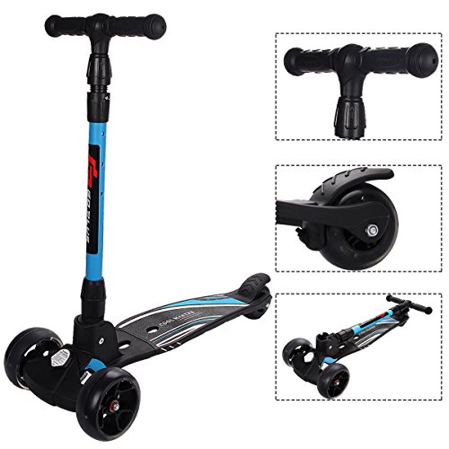 -. Title : Goplus Folding Kick Scooter for Boys & Girls T-Bar Height Adjustable Deluxe 3 LED Flashing Wheels for Kids