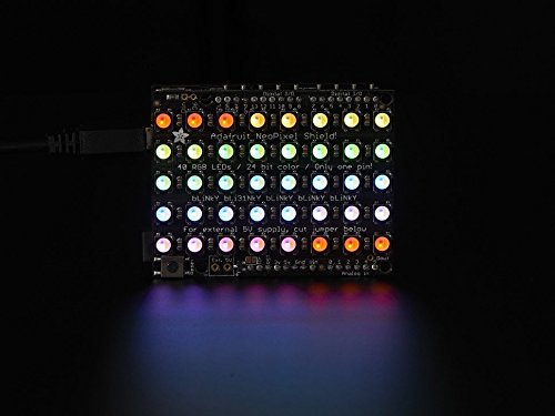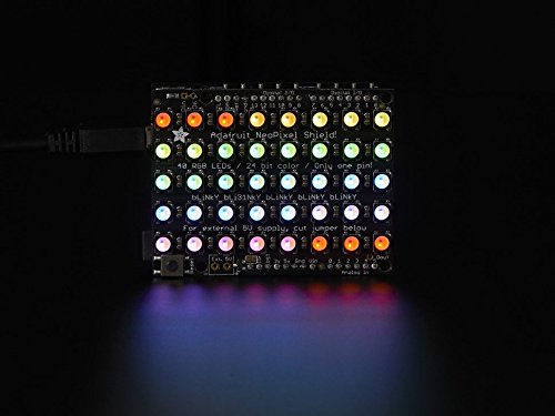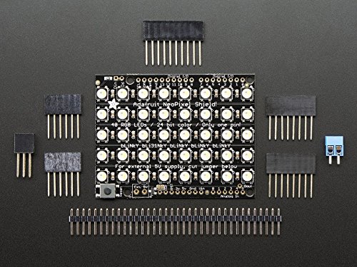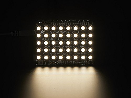 Put on your sunglasses before putting this shield onto your 'duino - 40 eye-blistering RGBW LEDs adorn the NeoPixel shield for a blast of configurable color. Arranged in a 5x8 matrix, each pixel is individually addressable. Only one pin (Digital #6) is required to control all the LEDs. You can cut a trace and use nearly any other pin if you need some customization.This is the Natural White RGBW version. We also have this NeoPixel Shield in Warm White, Cool White, and good ole' RGB!