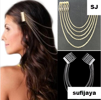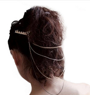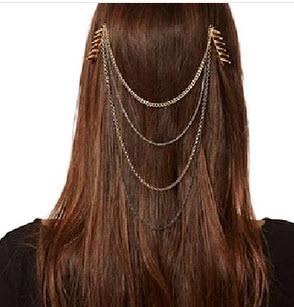 Fashion logam emas rantai rumbai panjang manset rambut sisir Fashion gold metallic tassel chain cuff length hair comb JEW SJA0846535262 bsw qty000