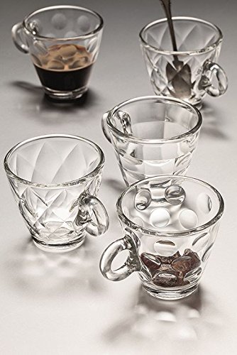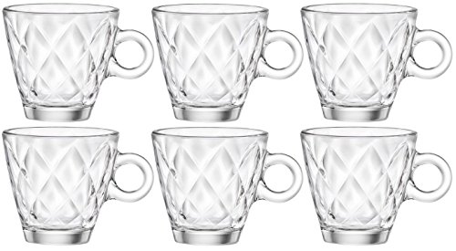 Studio : Bormioli Rocco Publisher : Bormioli Rocco Binding : Housewares Product Description Bormioli Rocco Kaleido Espresso Coffee Glasses - Set Of 6 Fully tempered. Shock proof and thermal stress resistant 100ml (3.5oz) - Height: 6.2cm Diameter: 6.3cm Lovely to hold with refined internal decoration. Dishwasher safe Stylish high quality Spanish made glassware 0