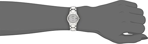 - Feature : Round watch in stainless steel with pave-set crystal accents, logo at 12 o'clock, and three-link bracelet / Japanese-quartz movement with analog display / Protective mineral crystal dial window / Features foldover clasp with single push-button-safety closure / Water resistant to 330 feet (100 M): suitable for snorkeling, as well as swimming, but not diving