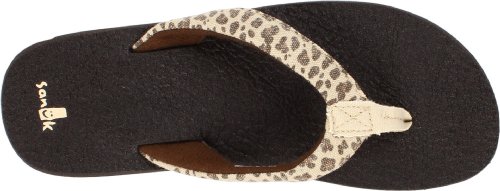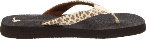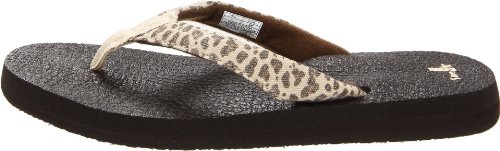 Flip-flop featuring cushioned animal-print canvas strap and solid toe post