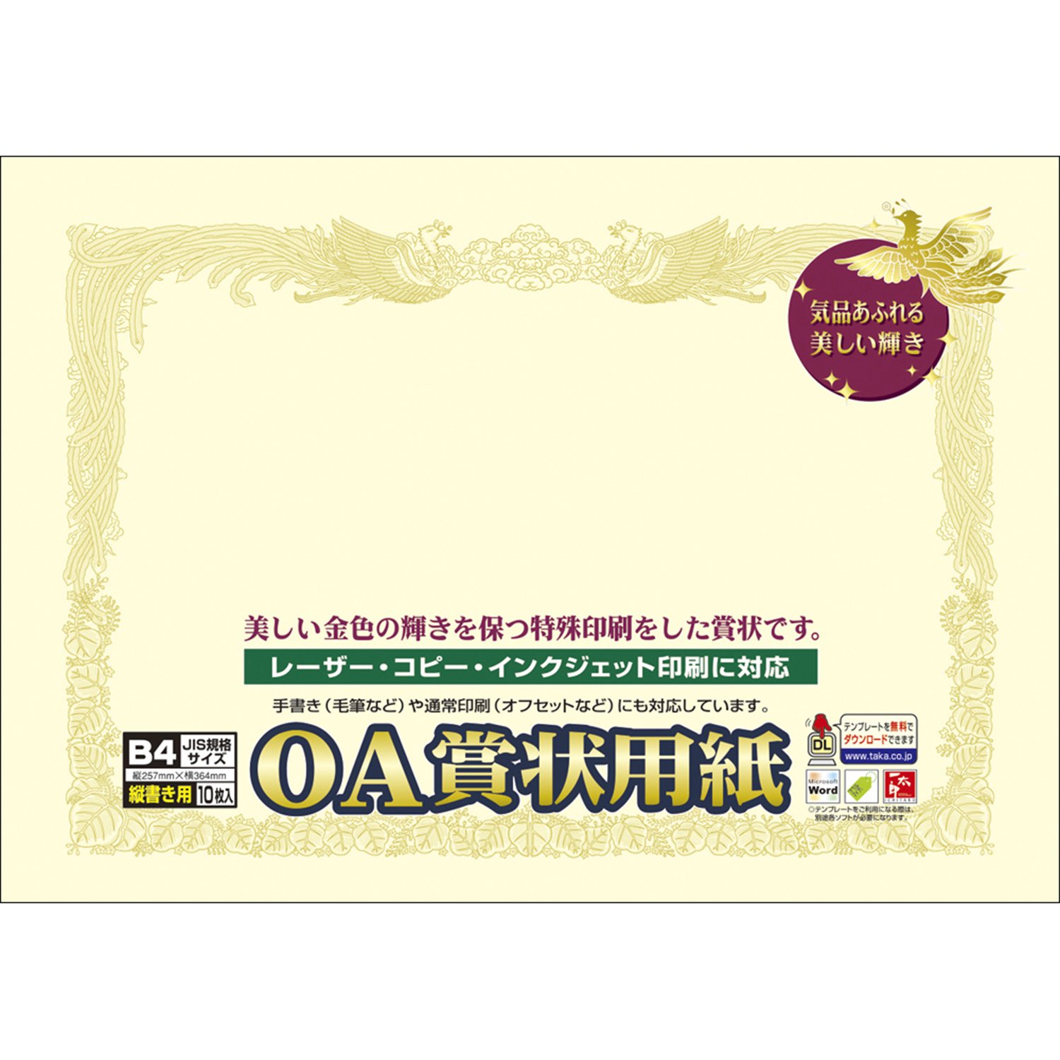 Hawk mark OA diploma paper 10-1077 vertical writing cream Kent paper B4 10 pieces