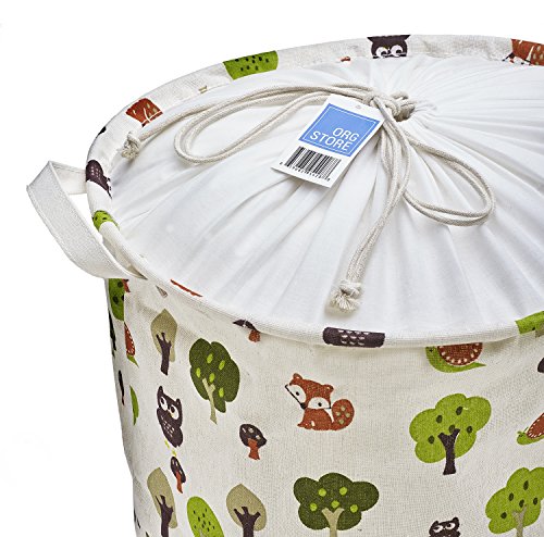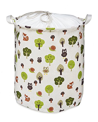 Org Store Cotton Fabric Collapsible Laundry Basket Dirty Clothes Hamper - Perfect for College Dorms, Kids Room & Bathroom - Forest Patterned