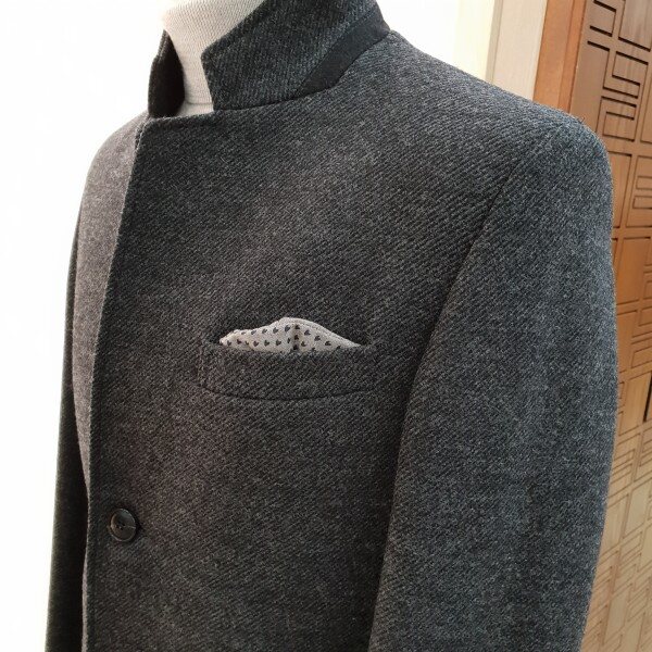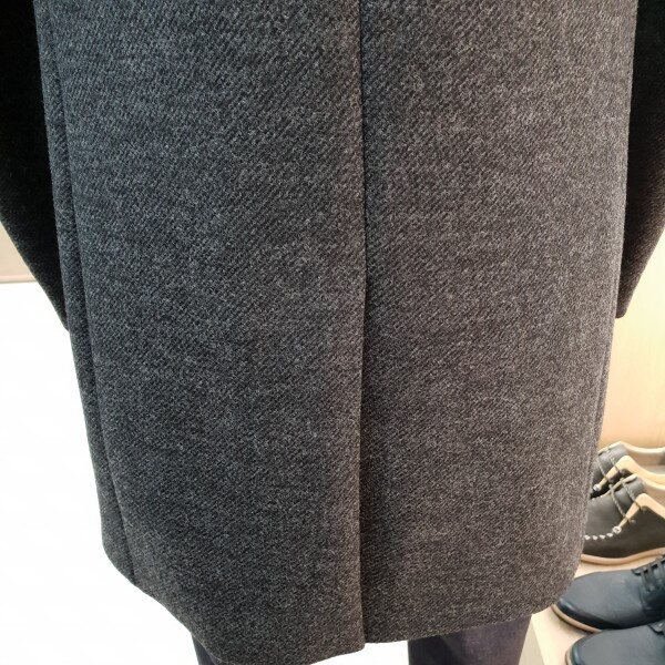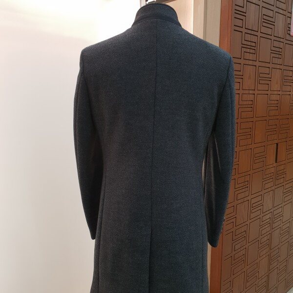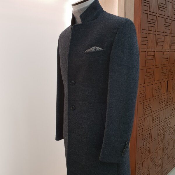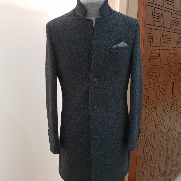 - 톤온톤 조직 디자인의 모던한 남성 코트.- 도톰한 울혼방 소재에 이면 패딩 충전재를 적용하여 보온성을 전해줌.- 하이넥은 접어서 착장시, 테일러드 라펠 연출이 가능함.- 가슴판 웰트 포켓으로 클래식한 멋을 더했음.- 포켓 이면 패턴 안감은 행커치프 연출이 가능함.- 사이드,인 포켓을 적용하여 수납성을 높였음.- 등판 밑단의 센터 벤트로 활동성을 전해줌.- 동절기 시즌에 다양한 이너와 코디가 용이함.