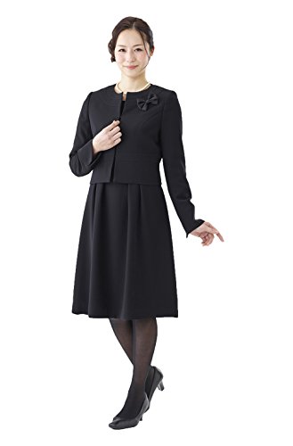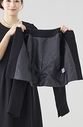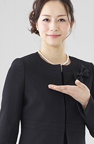 -. Feature : [着用シーン] 葬儀・告別式・通夜・一周忌 弔問・通夜・法事 卒園式・卒業式 / [原産国] 中国製(縫製:中国、企画・デザイン:日本、生地:日本) [洗濯表示] ドライクリーニング対応 水洗い:× 塩素系漂白剤:× アイロン:当て布、中程度温度(140-160度)掛け 溶剤:ドライ石油系 / [素材] ●ジャケット 表地:ポリエステル100% / 裏地:ポリエステル100% ●ワンピース 表地:ポリエステル100% / 裏地:ポリエステル100% / [ご利用シーズン] オールシーズン対応 春:○ 夏:○ 秋:○ 冬:○ [モデル着用サイズ] モデル身長:160cm 着用サイズ:9号 / [アイテム説明] ノーカラージャケットの衿くりに切り替えを施してあります。ウエスト切り替えがあるため足長効果も得られます。 取り外し可能なサテンリボン付きです。用途に合わせてご使用いただけます。 ウエストのタックが可愛らしいなフェミニンワンピースです。袖丈も長めで、袖口がペプラムになっています。 フェミニンな要素がたっぷり詰まった初めてフォーマルにぴったりなアンサンブル。 ジャケットとワンピースがセットになったアンサンブルは一年を通して着用でき、この一着があれば急な葬儀・通夜・法事などの悲しみの席でも、慌てることなく故人とのお別れに向かうことができます。急な葬儀・通夜・法事にも慌てることがないように、ご注文確定後にすぐ発送いたします。お急ぎの女性にも安心していただけますように親切・丁寧に対応いたします。 ※商品写真は撮影サンプルのため、スナップ(留め具)がシルバーになっておりますが、実際の商品はスナップ(留め具)がブラックになります。