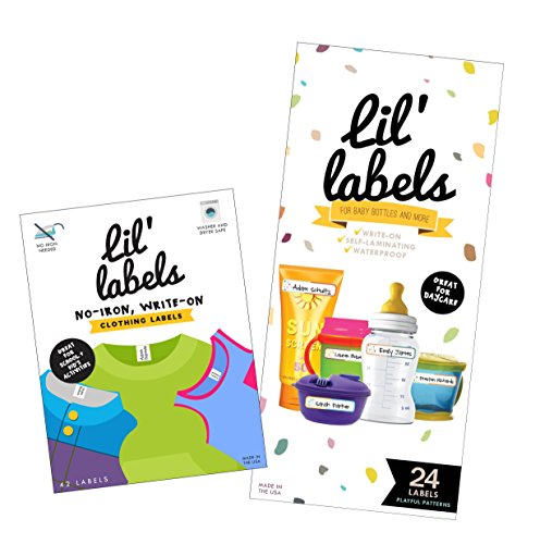 Quickly and easily get your baby bottles and extra clothes ready for daycare. Write-on and waterproof. Clothing labels - no iron needed and washer-and-dryer-safe. Just write, peel and stick - it couldn't be faster. Wash as many times as you want, they won't come off. Tips: wait 24 hours before laundering. Use with a ballpoint pen or fine-tipped permanent marker. Plain white labels. 42-Pack. Baby bottle labels - self-laminating. Durable and your writing is clean and easy to read (sealed and wipe able). Dishwasher-safe, microwave-safe, bottle warmer safe, freezer-safe. 24-Pack; animal friends design. Includes 2 free bonus gifts: doctors’ visits growth chart (fillable/editable PDF) and the essential daycare checklist (print-ready PDF).Feature