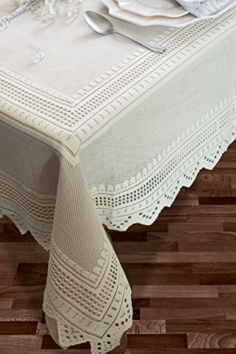 Product Description Create a elegant and homely look to your table setting. This high quality polyester lace tablecloth works great as an overlay for a solid color tablecloth or on its own. It is perfect for the Christmas season to decorate your tabletop for holiday dinner parties. Find DII’s full selection of colors sizes by searching for DII Lace Tablecloth. To view more of our products visit amazon.com/dii. 0