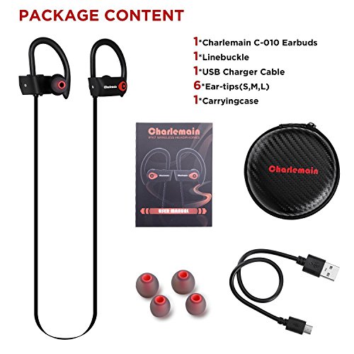 Charlemain Bluetooth Kopfhorer Sportkopfhorer Joggen V4.1 Stereo Headset Noise Cancelling Wireless in Ear Kopfhorer mit lange Spielzeit Bluetooth Ohrhorer fur iPhone 8, 7, 7Plus Samsung Galax