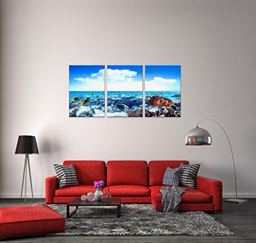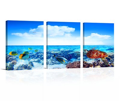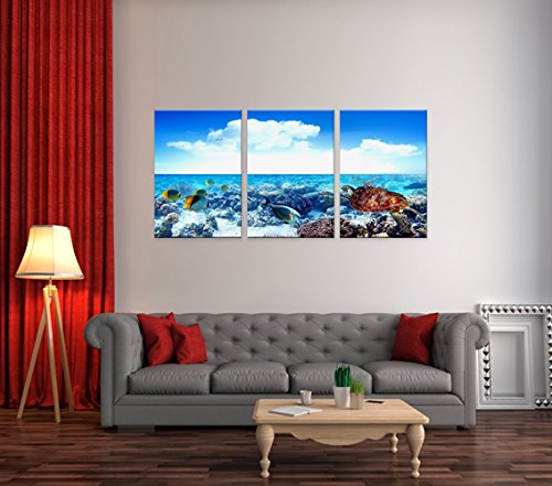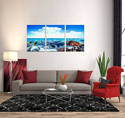 High Definition modern canvas printing art work,Blue sky and white clouds, underwater world printed on high quality canvas. great gift idea for your relatives and friends. Stretched and Framed art canvas prints ready to hang for home decorations wall decor Canvas prints set