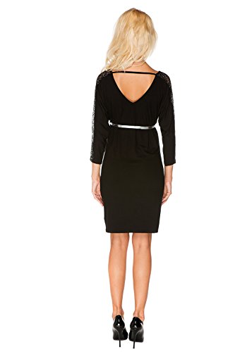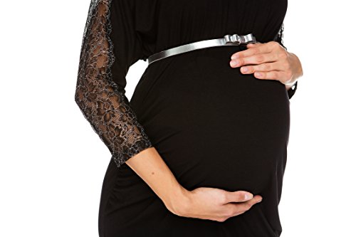 ruched sides, sleeves decorated with lace, sold with a silver belt