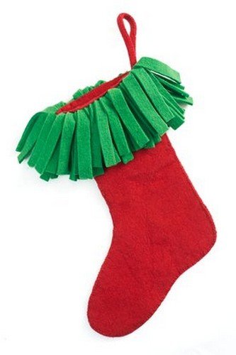 - Traditionally-hued Christmas stocking with fun fringed cuff just begs for an elf to put it on and dance a jig